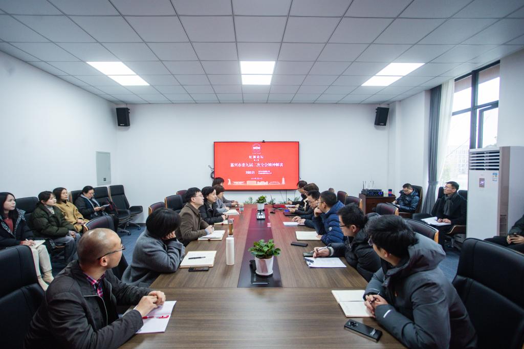 师生进行主题为“嘉兴市委九届二次全会精神解读”的专题辅导报告。论坛由学院党委书记施敏颖主持。
