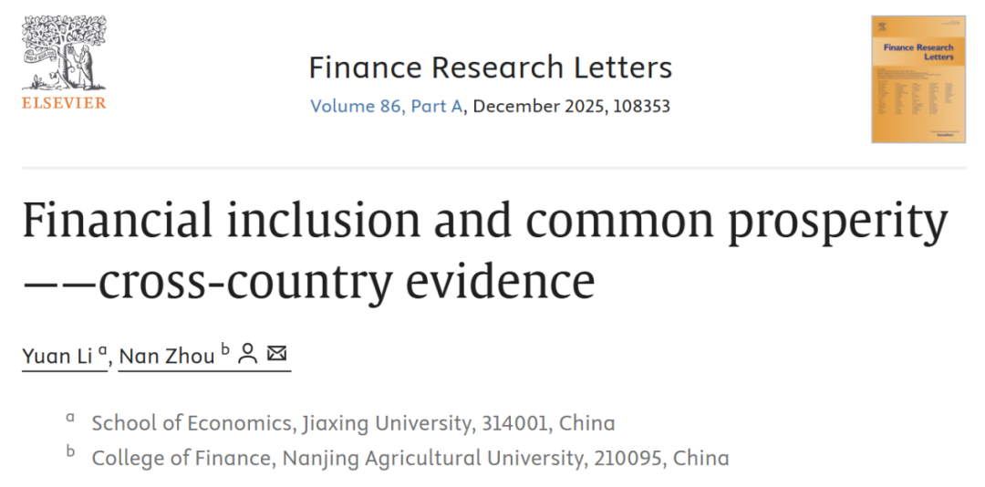 李渊博士与南京农业大学金融学院周南副教授合作论文 “Financial Inclusion and Common Prosperity——Cross-country Evidence”在浙江大学520自拍