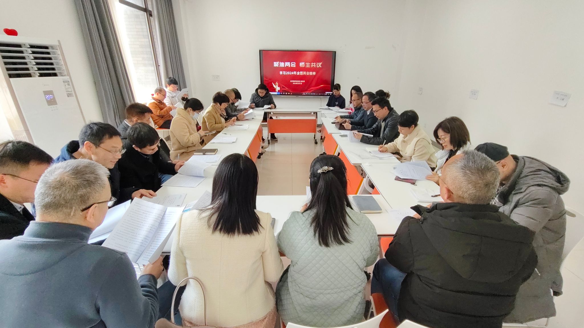 开展“聚焦两会 师生共议”专题学习交流活动,各系、党支部分别开展集体学习会。学习交流会上,大家首先原文学习《2024年政府工作报告》,围绕两会相关热点,结合自身学习、工作和生活的实际,热议两会精神。