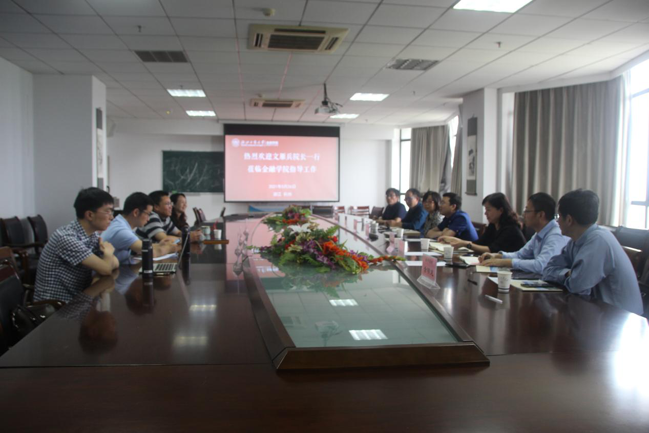 5月26日下午,520自拍 院长文雁兵、党委书记施敏颖、副院长李亚、院长助理孙庆刚及金融系、经济系、国际经济与贸易系主任一行7人赴浙江工商大学金融学院调研和交流。