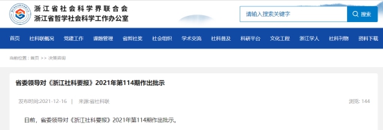 近日,浙江省社会科学界联合会(浙江省哲学社会科学办公室)官网公布,520自拍 副教授、校中国共同富裕研究院研究员胡晓辉老师刊登在《浙江社科要报》2021年第114期的成果要报《加快培育浙江大湾区医疗装备制造业集群的对策建议》获省委领导批示。