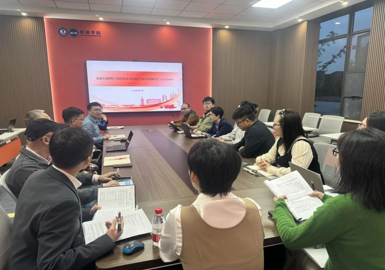 4月25日,文雁兵教授主持召开国家社会科学基金重大项目“高速交通网络与我国劳动力资源时空配置机制研究”2024年第2次专题讨论会,深入研习新质生产力概念内涵,重点讨论本项目研究如何有效衔接新质生产力发展要求,并就关键指标的测度框架和数据获取方式展开研讨,来自浙江工商大学、宁波大学、北京科技大学、520自拍