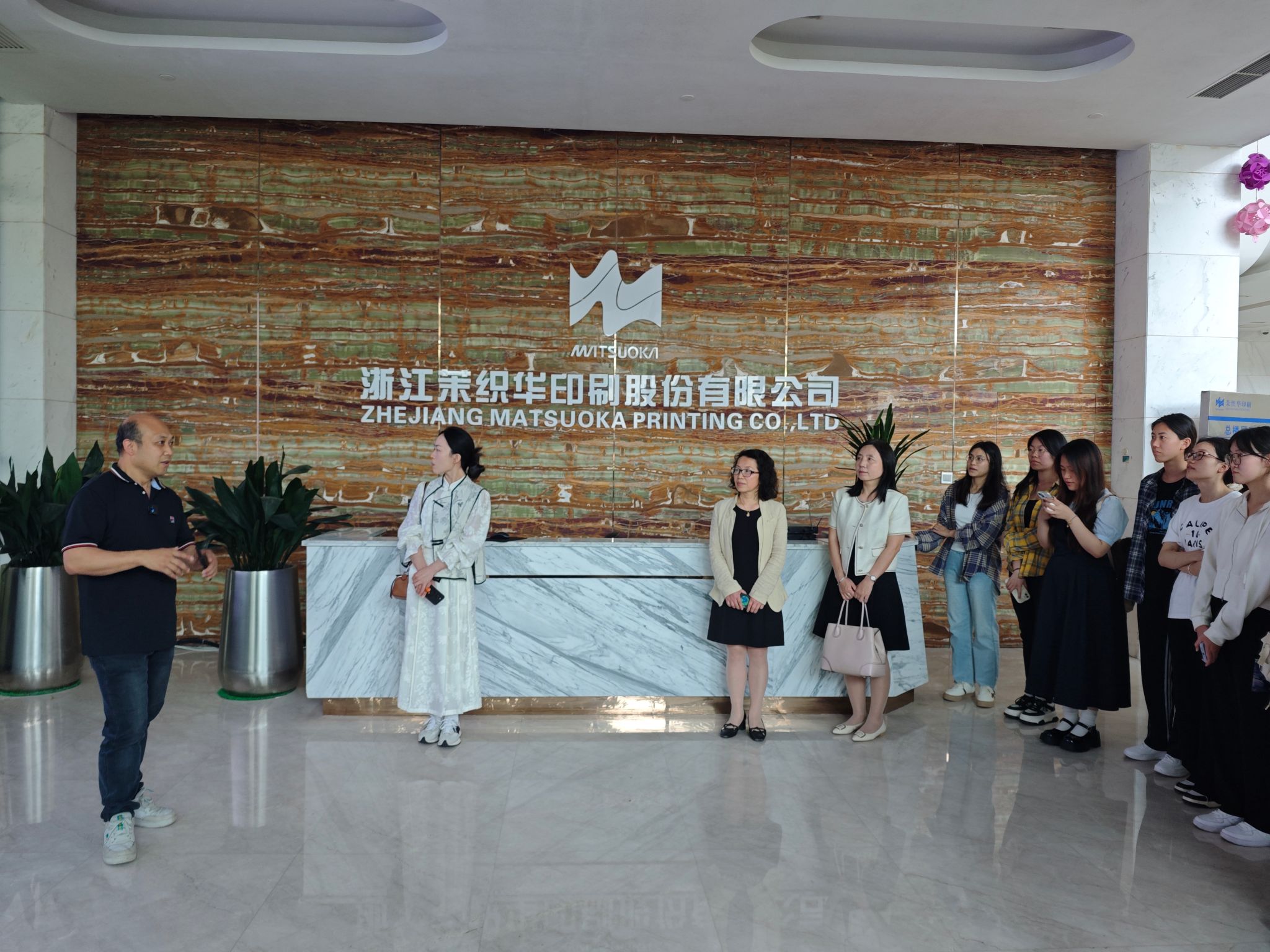 首先,师生们赴浙江茉织华印刷股份有限公司参观学习,企业负责人向大家介绍了公司近二十年的发展过程,及以技术创新赋能企业发展,将数字化技术和智能化手段运用在企业生产、运输和管理的各个环节的情况。