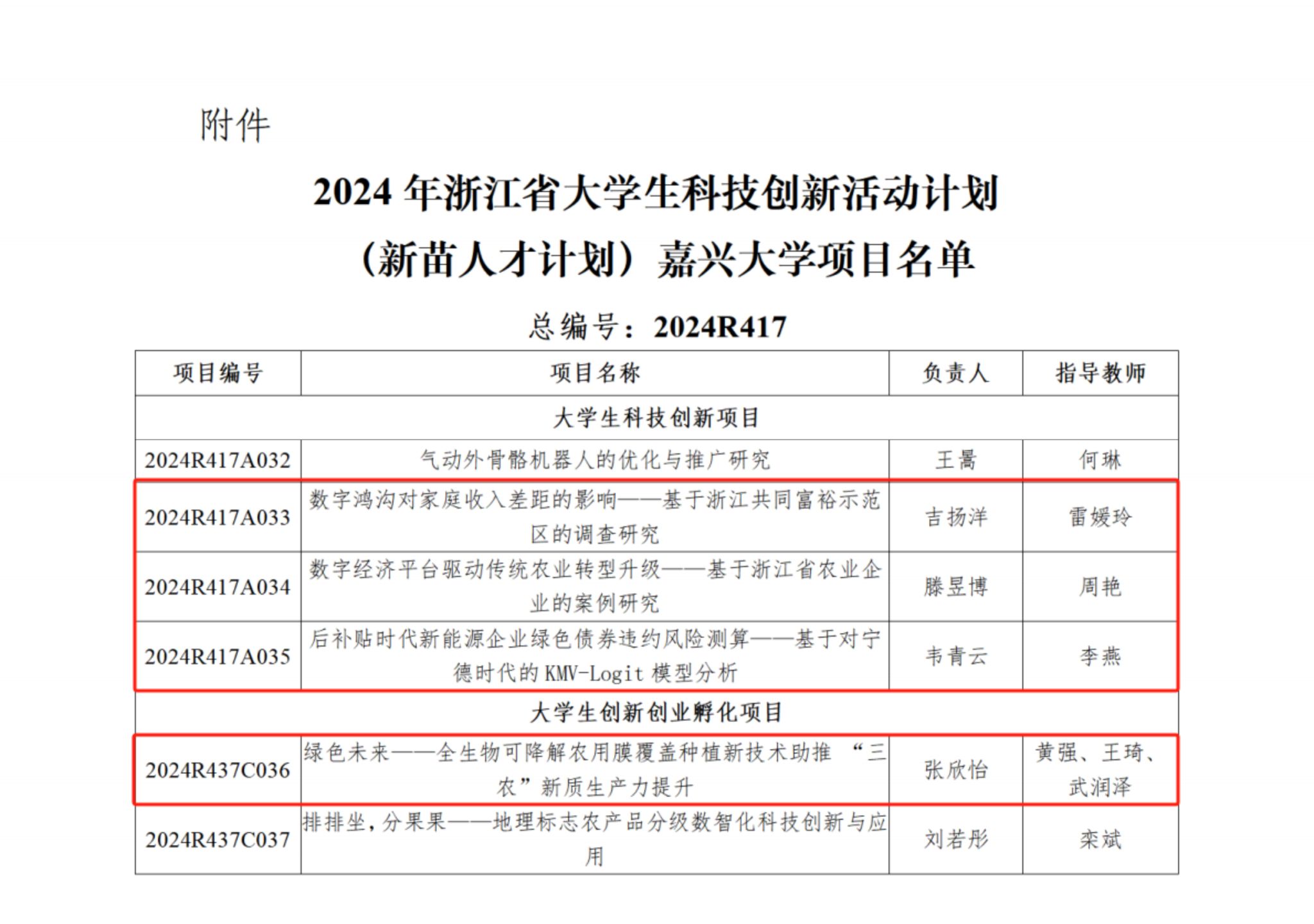 【经院喜报】520自拍 获4项2024年浙江省大学生科技创新活动计划 (新苗人才计划)立项