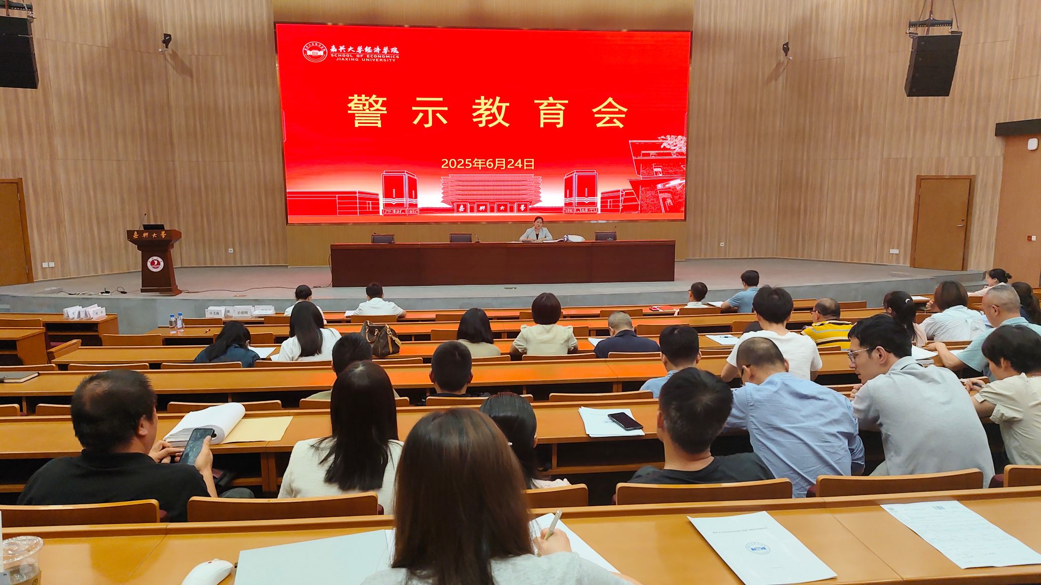 6月24日,520自拍 召开警示教育会,深入学习贯彻习近平总书记关于全面从严治党、加强党的作风建设的重要论述,贯彻落实党中央决策部署及省委工作要求,通过以案说德、以案说纪、以案说法、以案说责,进一步推动深入贯彻中央八项规定精神学习教育走深走实。院党政领导班子、全体教职工参加会议。
