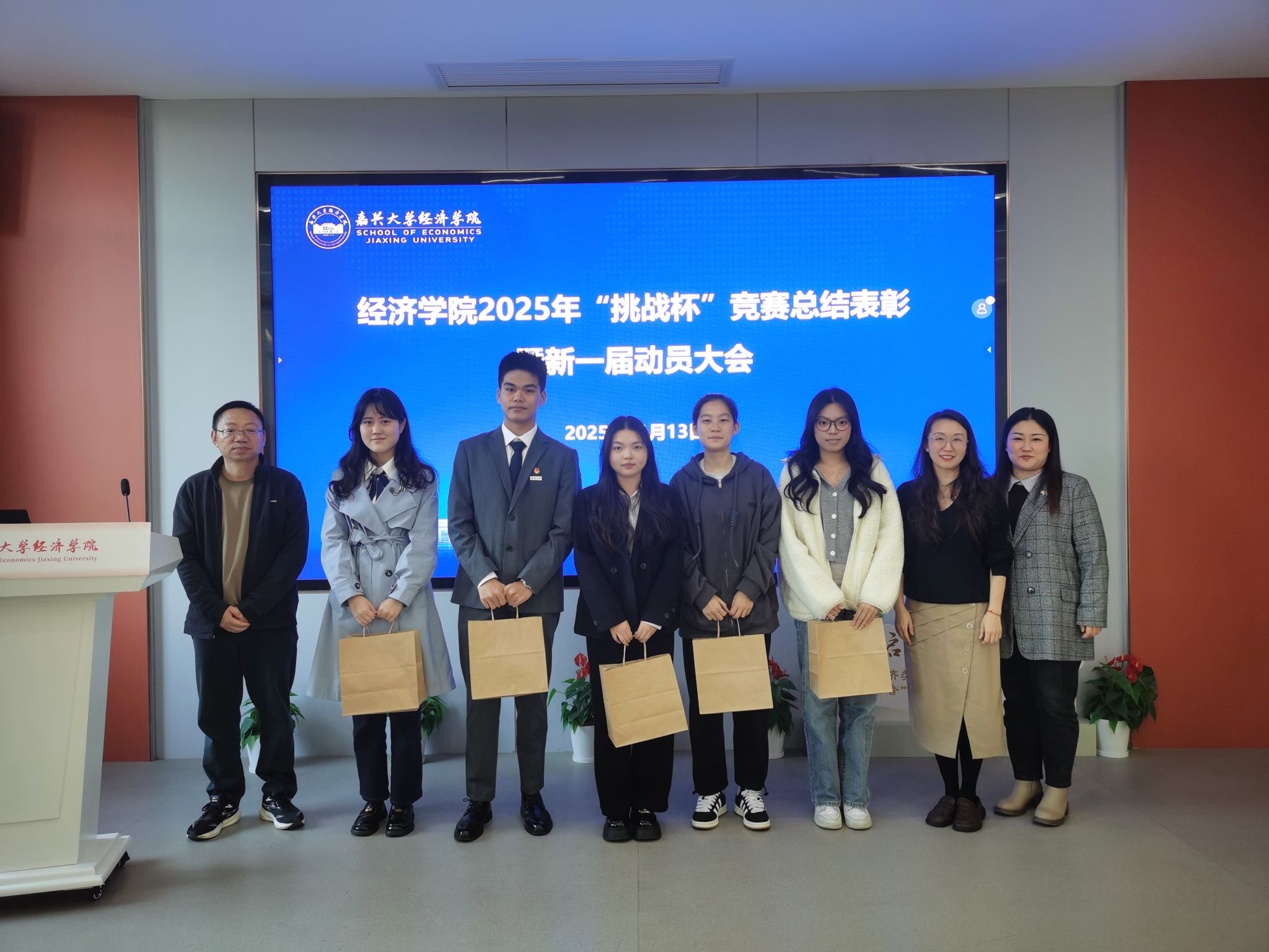 在以往赛事中取得的丰硕成果,并对学院未来的创新创业教育工作提出了殷切期望。她鼓励经院学子要勇于挑战自我,将专业知识与社会需求紧密结合,在“挑战杯”这个国家级赛场上展现红船旁青年的卓越风采。一是聚焦社会热点,通过反复研讨优化选题,筑牢成功根基,因为优质选题是竞赛突围的关键;二是扎实开展调研,充分依托暑期社会实践、专业课程调研等平台深入一线,在实践中发现问题、提炼需求、找准解决方案;三是注重文本撰写,以精益求精的态度反复打磨修改,不断凝练核心亮点、提升表达质感,让文本成为冲击更高奖项的有力支撑。