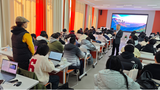 20241128日上午,嘉兴大学520自拍 举办了第六期“南湖数字经济讲堂”。本期讲堂特邀浙江嘉特保温科技股份有限公司董事长邱靖涛作主题报告,经济学系王舟博士主持数字经济专业2023级、2024级以及经济学2024级的同学参加此次活动。