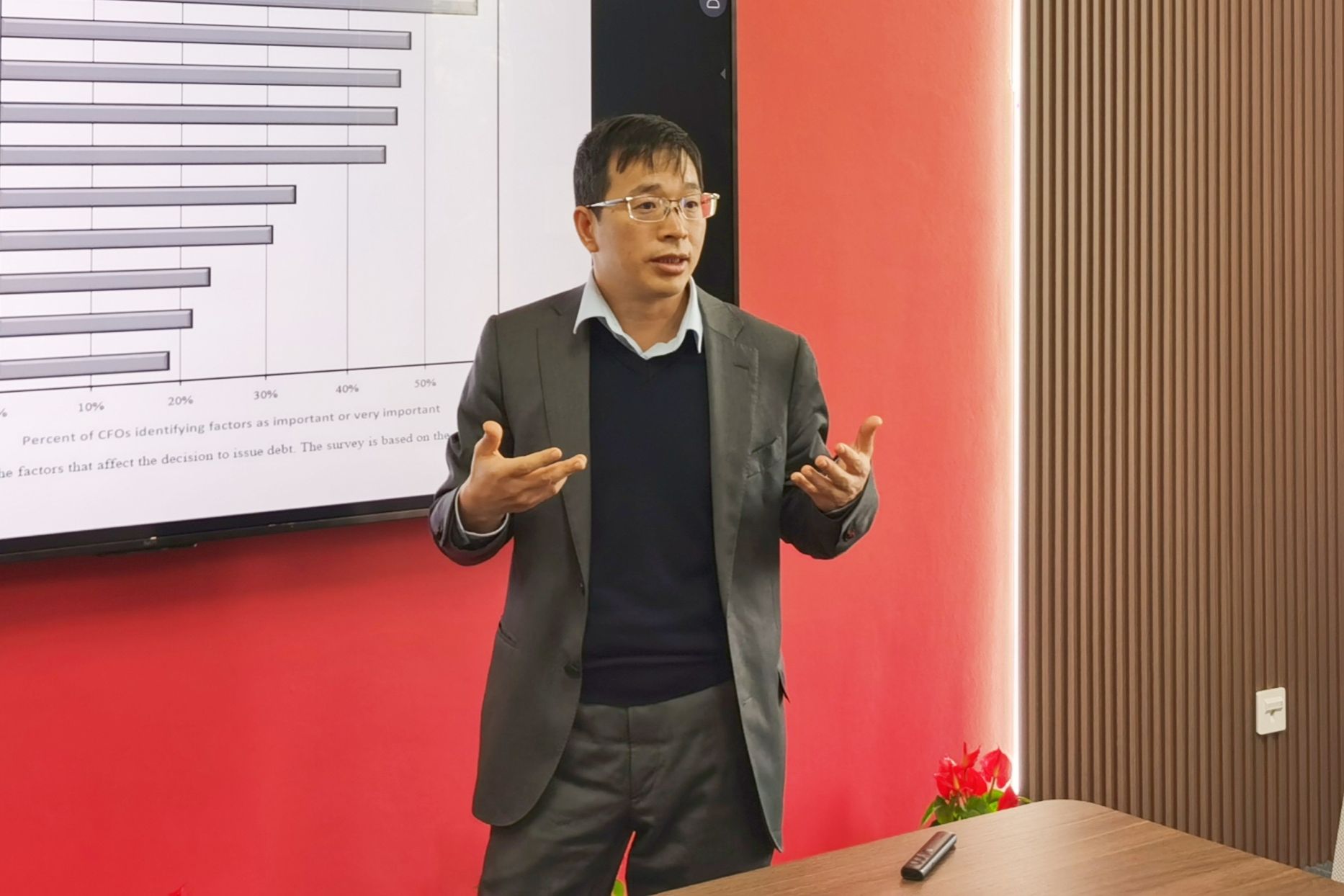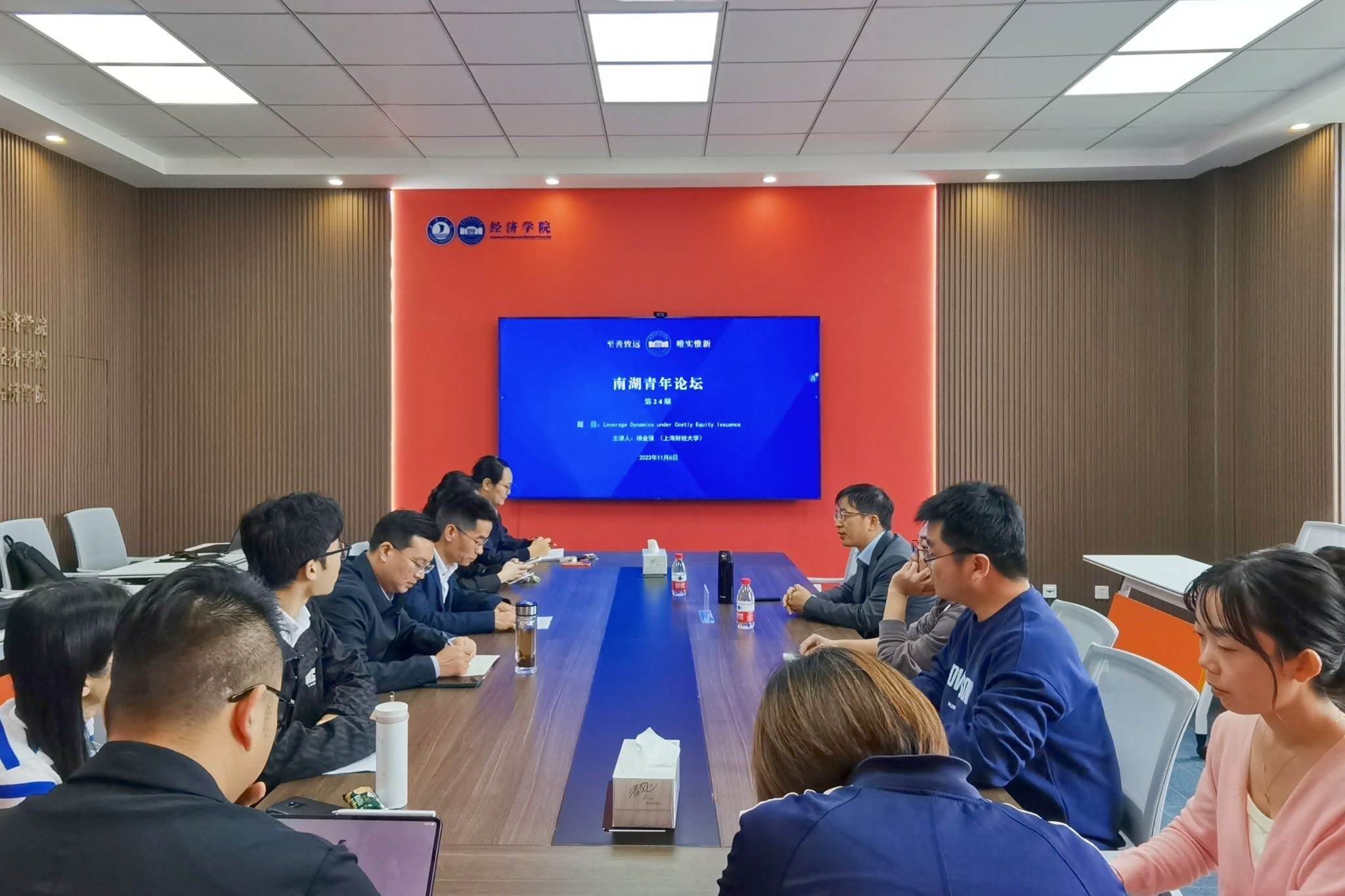 11月6日下午,520自拍 在尚德楼268会议室成功举办第24期南湖青年论坛。上海财经大学金融学院杨金强教授应邀作题为《Leverage Dynamics under Costly Equity Issuance》的学术报告,520自拍 金融系主任李玉双教授主持,520自拍 多名教师共同参与研讨。