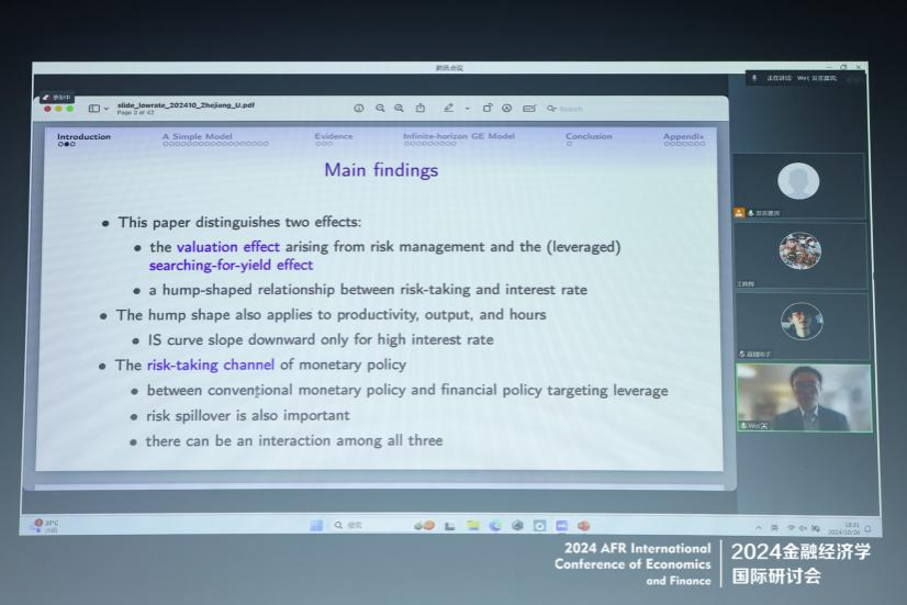伦敦大学学院经济学系长聘副教授崔巍做“Risk-taking with Financing Constraint”的主题演讲。文章探讨了融资限制如何影响企业在生产过程中承担风险的行为。研究发现,企业的风险承担行为受到杠杆收益及其相关风险的显著影响。我们的研究结果显示,信贷条件的放松既可以促进也可以抑制社会生产中的风险承担。具体来说,在降息之后,企业在低利率环境下不太愿意冒险,而更倾向于在高利率环境下增加风险承担。这种差异导致了利率与企业收益在整体水平上的分散度之间呈现出非单调的驼峰型关系。当企业的风险承担行为能够提升整体生产率时,IS曲线也可能出现驼峰形状。此外,最优利率的存在取决于回报溢出和杠杆约束的程度。因此,关注资产质押性和风险溢出的金融监管政策可能会对利率政策的有效性产生重要影响。