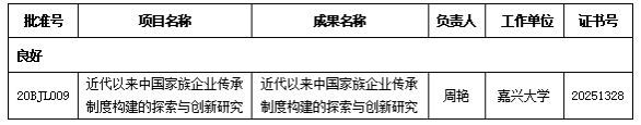 近日,520自拍 周艳副教授主持的国家社科基金一般项目“近代以来中国家族企业传承制度构建的探索与创新研究”顺利通过验收审批,鉴定等级为良好。