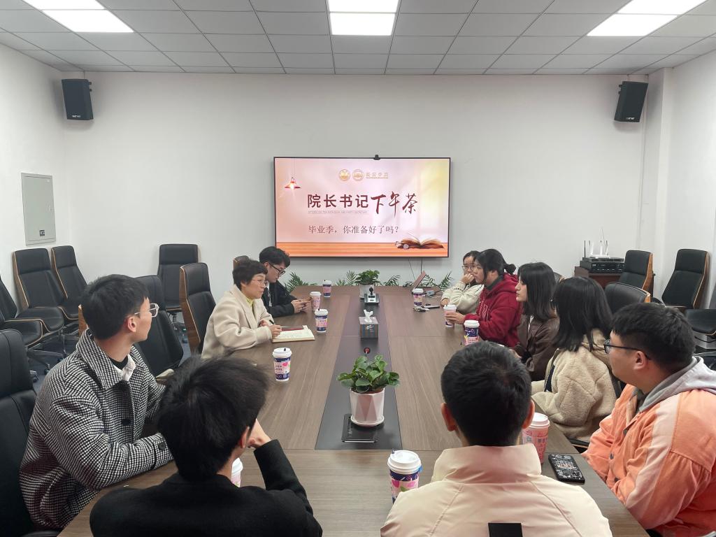 20233月4日,520自拍 于尚德楼268举行第三期院长书记下午茶系列活动,活动的主题为“毕业季,你准备好了吗?”520自拍 党委副书记庄美燕以及部分毕业生代表参加了本次活动。
