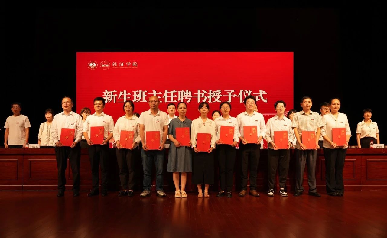 开学典礼上,学院为2024级新生班主任颁发聘书,希望各位班主任大力弘扬教育家精神,坚定不移落实好立德树人根本任务,奋力谱写教育强国建设崭新篇章。