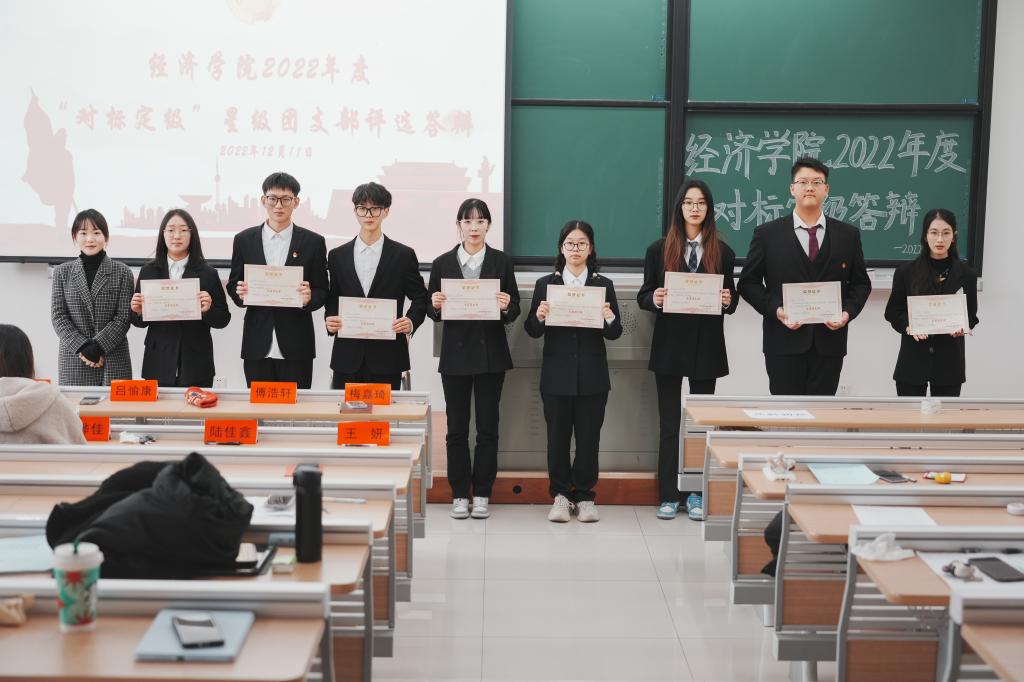 首先,由主持人俞芝怡介绍本次活动的具体流程和规则。随后,各团支部立足自身特色,围绕支部建设、团员管理、组织生活、制度落实、作用发挥五大方面对本团支部工作成果进行汇报,有效促进了各团支部之间相互交流和学习,展现了团结向上、锐意进取的精神风貌。经过现场评选,经济203、国经国际201、经济202、经济201、国经212、经济211、金融213、经济213被评为五星团支部。