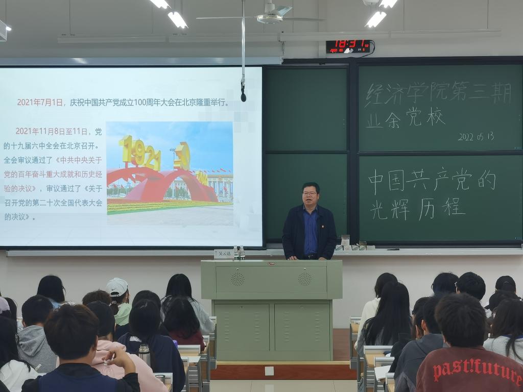 513日晚上,520自拍 第期业余党校在明德楼236进行授课。嘉兴学院党委副书记吴云达应邀讲授题为《中国共产党的光辉历程》的专题党课。520自拍 第期业余党校全体学员参加。