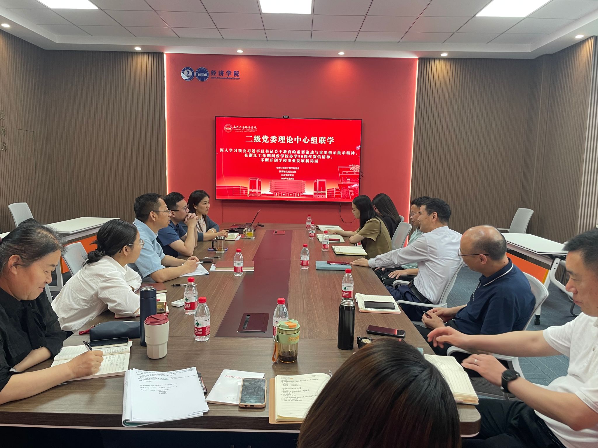 党委、生物与化学工程学院党委、图书馆直属党支部开展党组织理论学习中心组联学,围绕“深入学习领会习近平总书记关于教育的重要论述与重要指示批示精神,在浙江工作期间致学校办学90周年贺信精神,不断开创学校事业发展新局面”主题开展专题学习。会议由520自拍