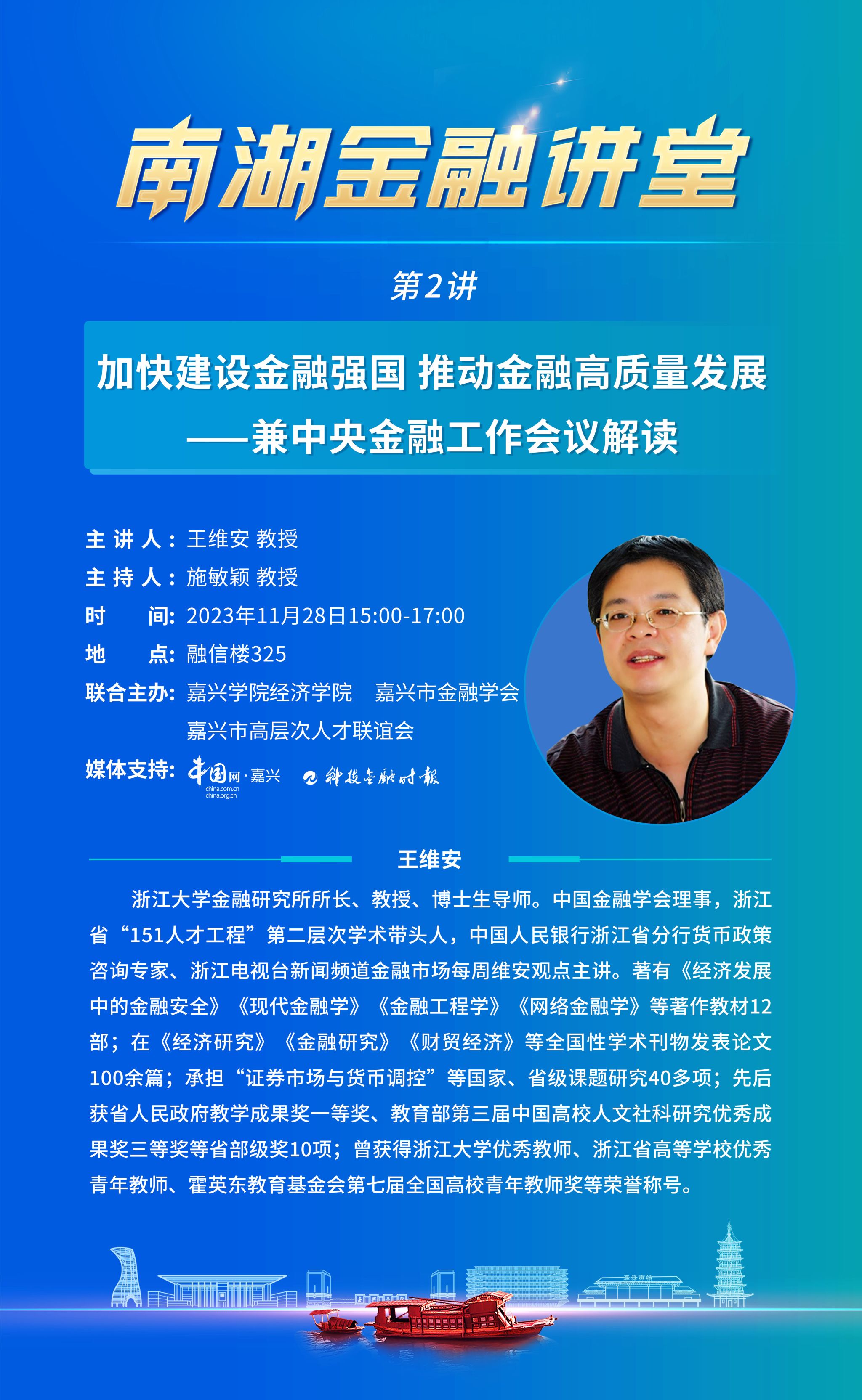 南湖金融讲堂第2讲:加快建设金融强国 推动金融高质量发展——兼中央金融工作会议解读