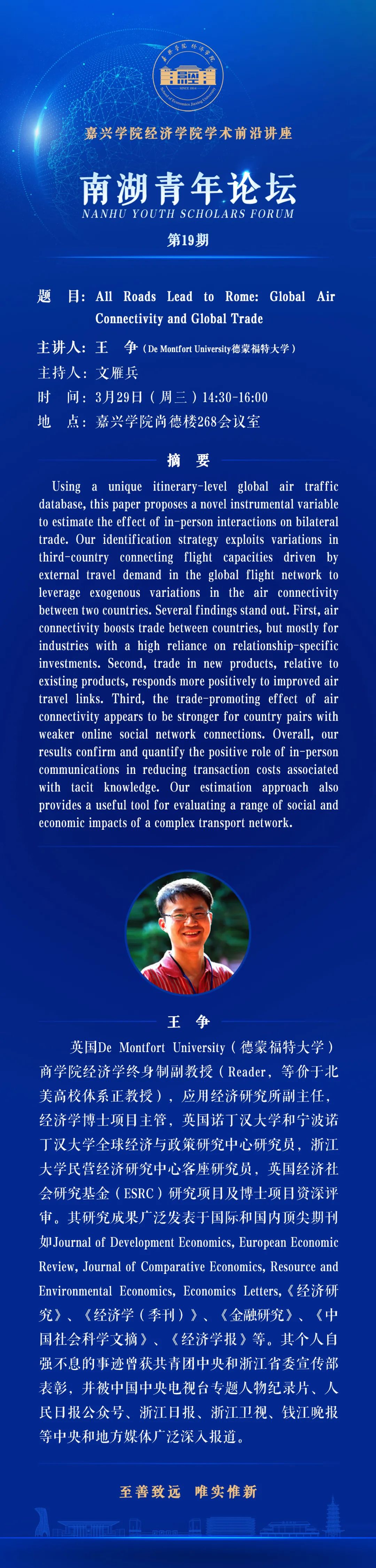南湖青年论坛NO.19:All Roads Lead to Rome: Global Air Connectivity and Global Trade
