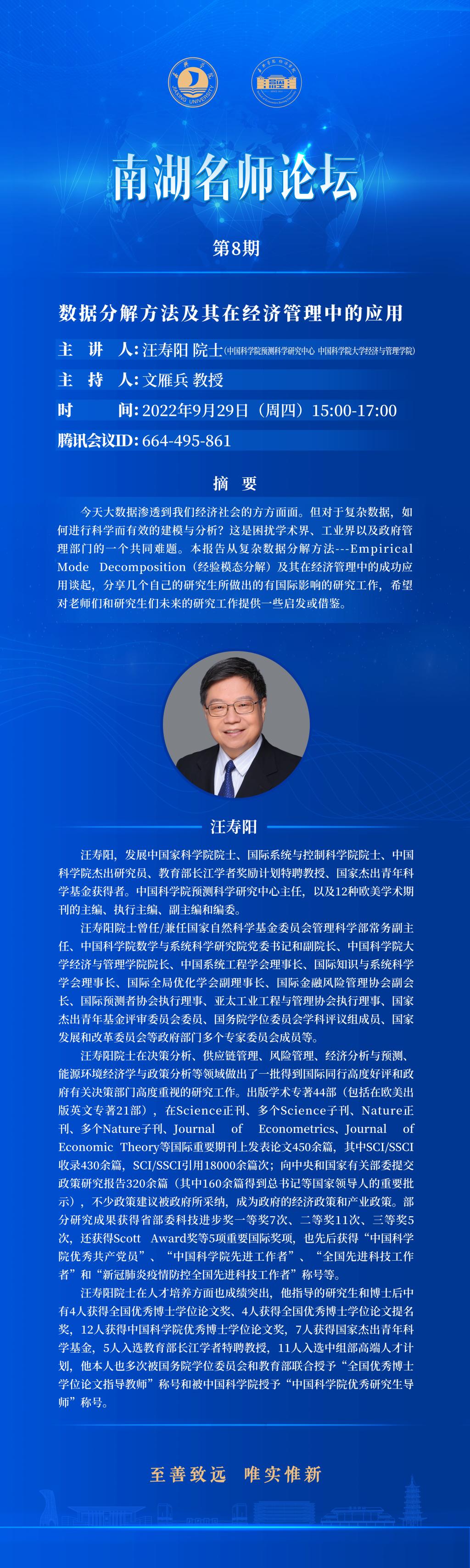 南湖名师论坛NO.8:数据分解方法及其在经济管理中的应用